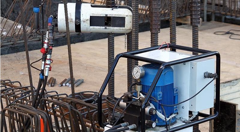 Для обжима арматуры используют гидравлические прессы. В процессе монтажа пресс нужно перемещать, так как у него значительный вес (около 250 кг). Для точной подачи к месту стыка может потребоваться подъёмный механизм или кран